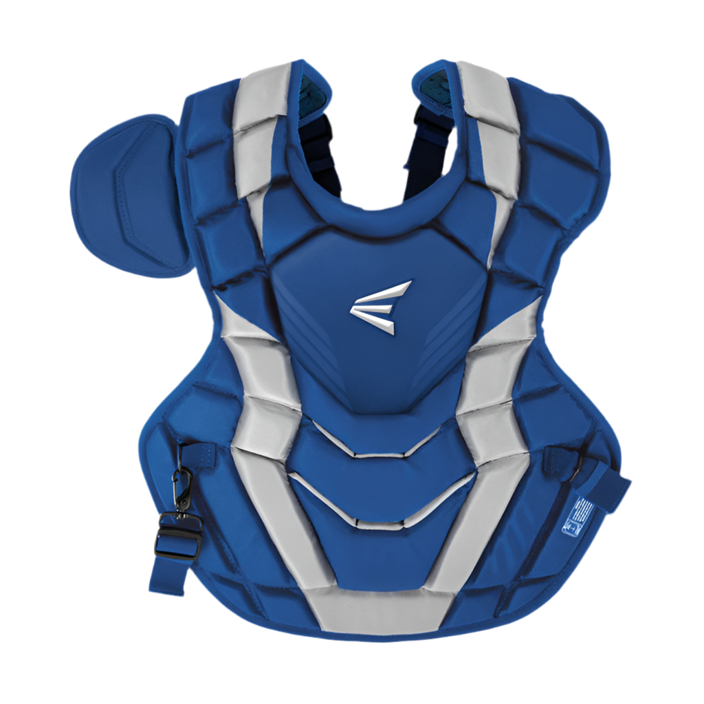 with Easton’s® Elite X™ Catcher’s Gear takes fit and performance to a whole new level. The Elite X™ Chest Protector features stacked memory foam in the ab area, providing improved rebound control so blocked balls stay close, preventing runners from advancing. The Elite X™ Chest Protector is constructed with a heavy-duty, black-coated steel inset waist clip, an adjustable shoulder cap, and a four-point webbing strap system with a comfortable neoprene back organizer, providing players with a securely wrapped fit and easy adjustability.
