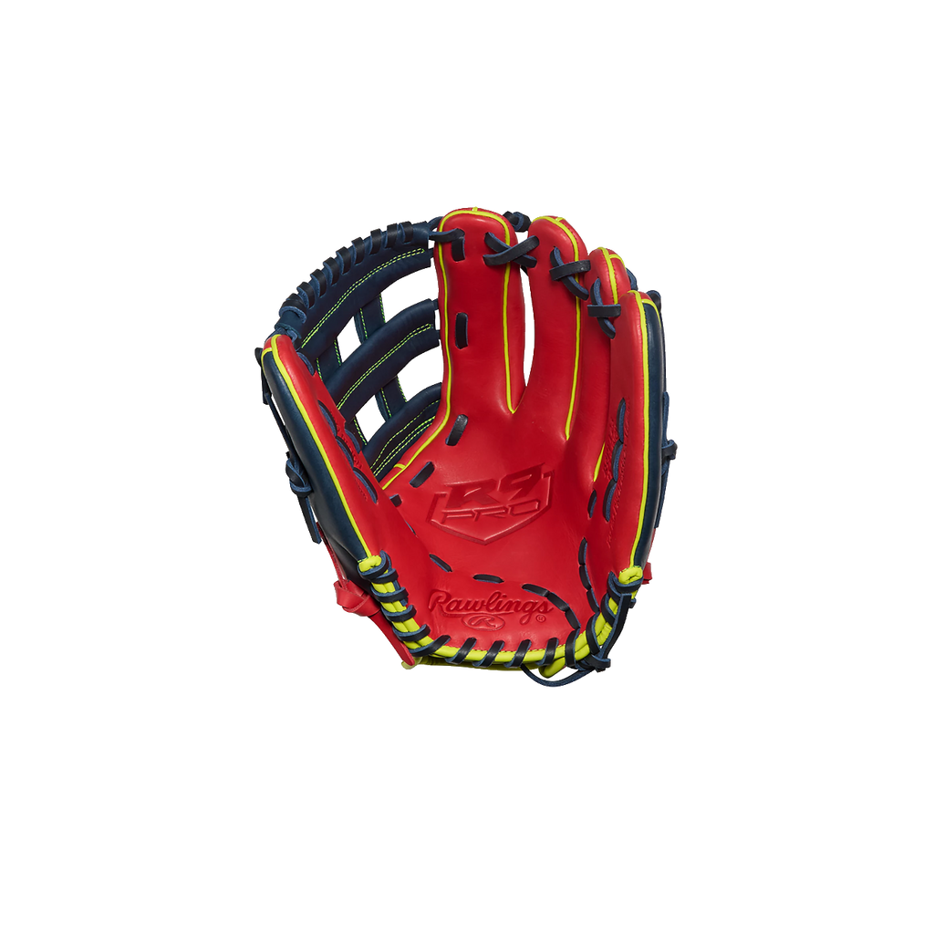 Play your best game when you wear the Rawlings 12.5 in Adult R9 Pro Fernando Tatis Jr Baseball Glove. Its full leather construction enhances durability. The pro H-web pattern creates an open structure for better visibility and ball-trapping ability, and its pro patterns are used in Major League Baseball.
