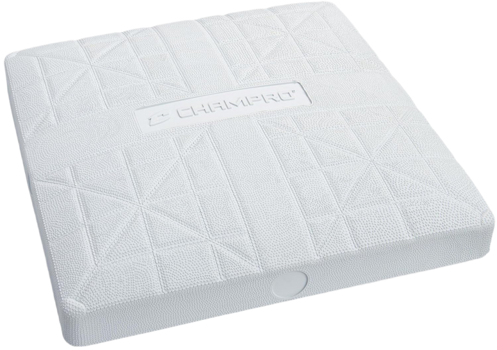 The CHAMPRO Hall Base Set includes 3 of CHAMPRO’s premier bases. Made of molded rubber, the bases’ tough pebble embossed, UV resistant top prevents metal spikes from puncturing or slipping on the surface of the base. The sidewalls are reinforced to withstand impacts even with extreme use and maintain base shape in the face of players sliding to safety. A heavy-duty polyurethane-covered foam pad beneath the rubber exterior holds up beneath the traffic of players running the bases.