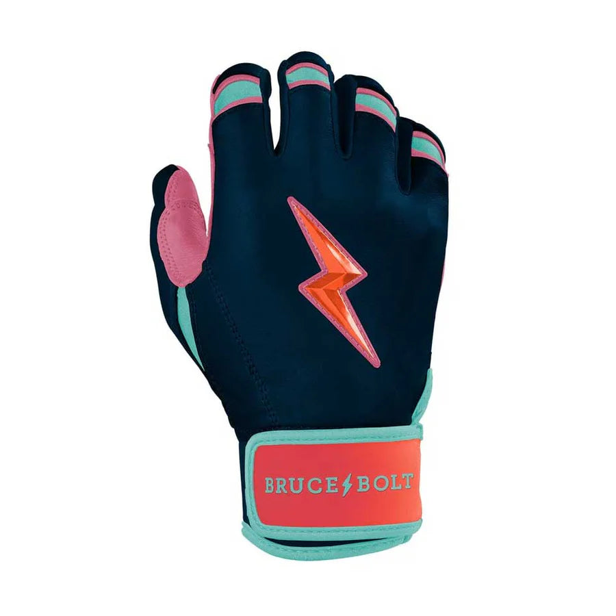 HIGHEST QUALITY, MOST DURABLE BATTING GLOVE IN BASEBALL: Each pair of BRUCE BOLT batting gloves are handmade by skilled craftsmen using only the highest quality 0.9mm Cabretta leather and stitching techniques which makes our gloves buttery soft but more durable than any other glove on the market.