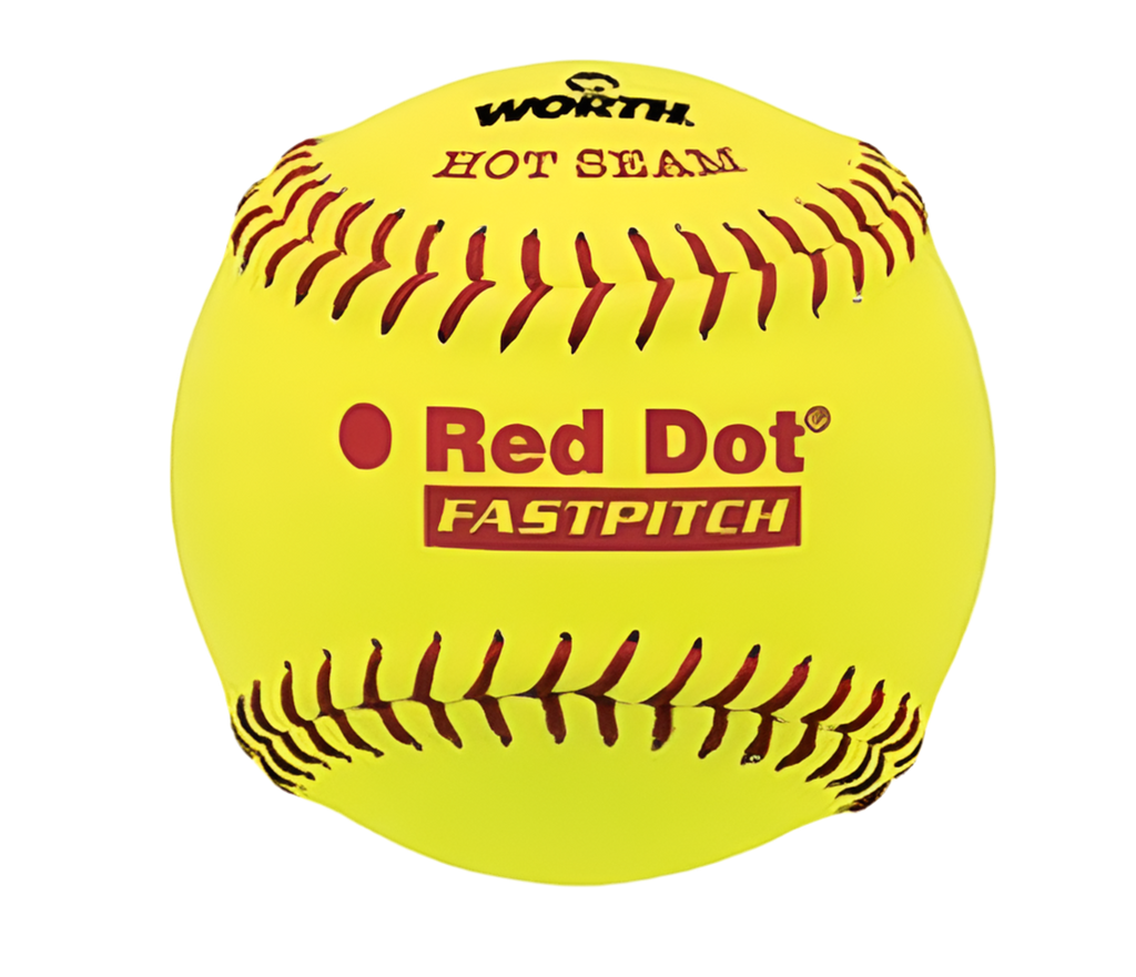 These Worth Red Dot 12" balls have a leather cover and red stitching. Worth Hot Dot softballs are designed to give players consistent hit distance at all temperatures, especially true in hot weather conditions. Added to these softballs is the C-LOK adhesive and moisture barrier and then the SYCO composite leather cover for more durability.